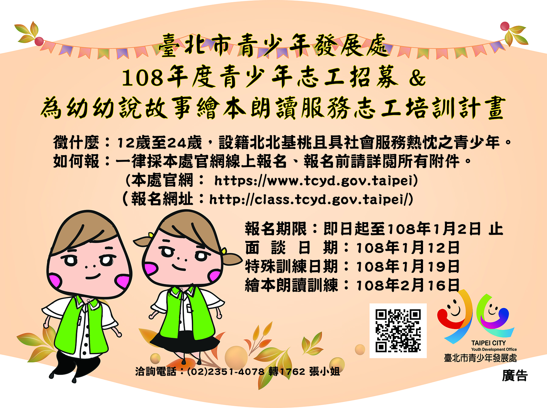 二、招募對象:12歲至24歲設籍臺北市或就讀臺北市、新北市