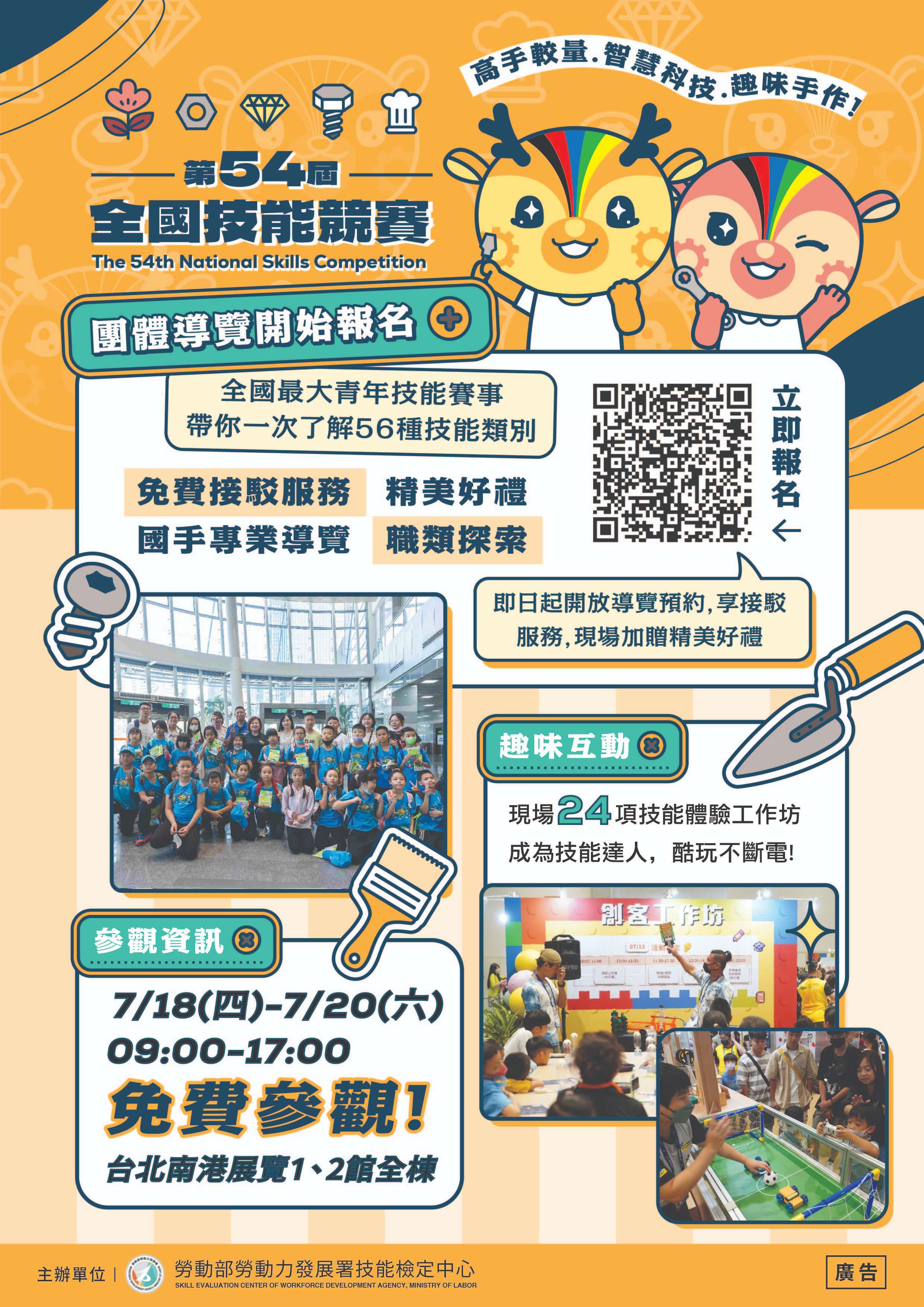 三、旨揭競賽活動歡迎各級學校安排學生戶外教學及師生一同 蒞臨參觀,也歡迎組團親子參訪,大會將提供免費導覽 (含外語)服務,期能強化技能教育、提升學習意識,以 達到向下扎根之目的,並強化國際連結。