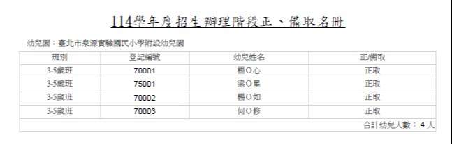 名額尚有3名 ,全面線上辦理,6/3- 6/4至招生e點通線上 https://kid-online.tp.edu.tw/ 辦理備取登記。