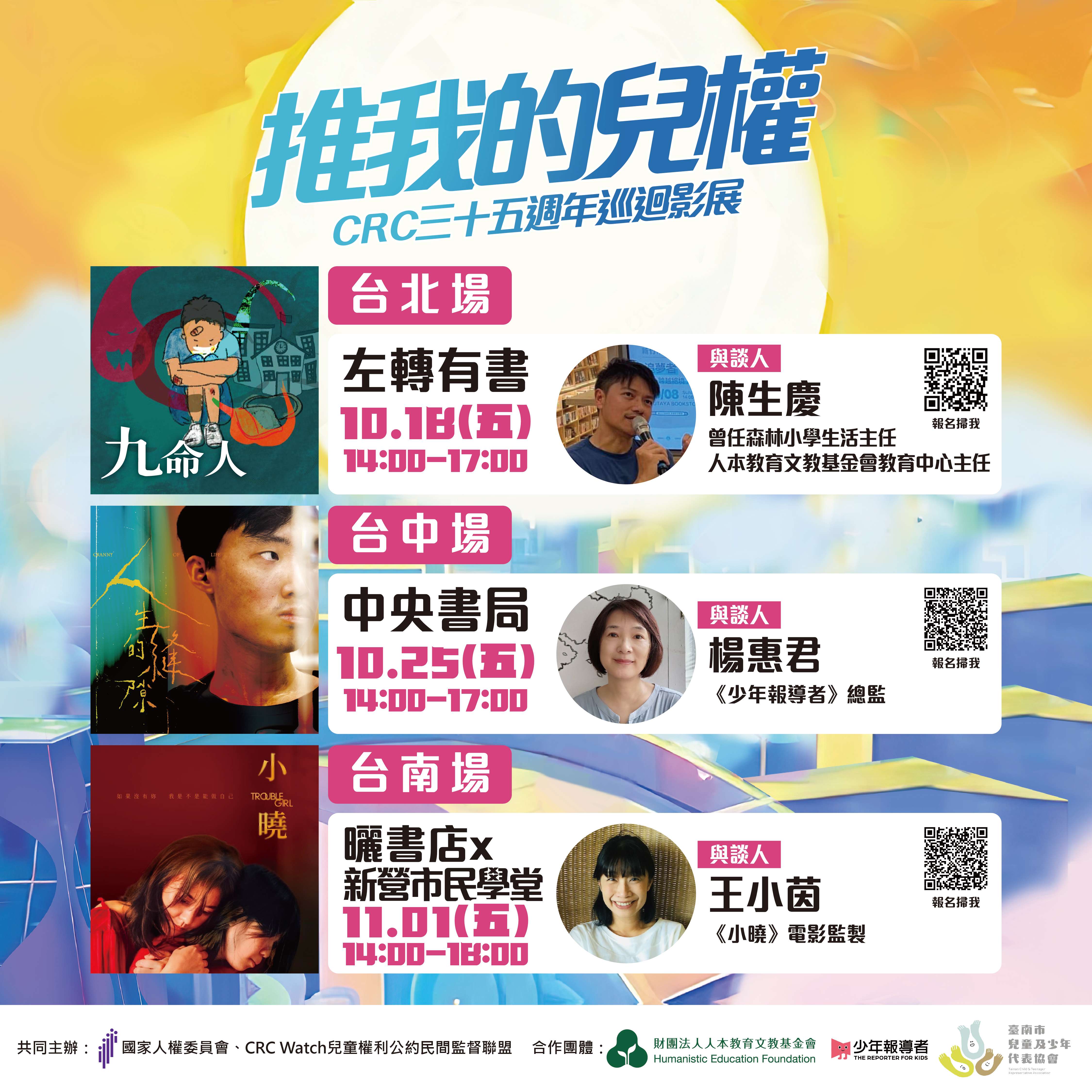 該聯盟為推動青少年權益,將辦理3場次的巡迴影展,播映 場次時間及地點如附件簡章說明: