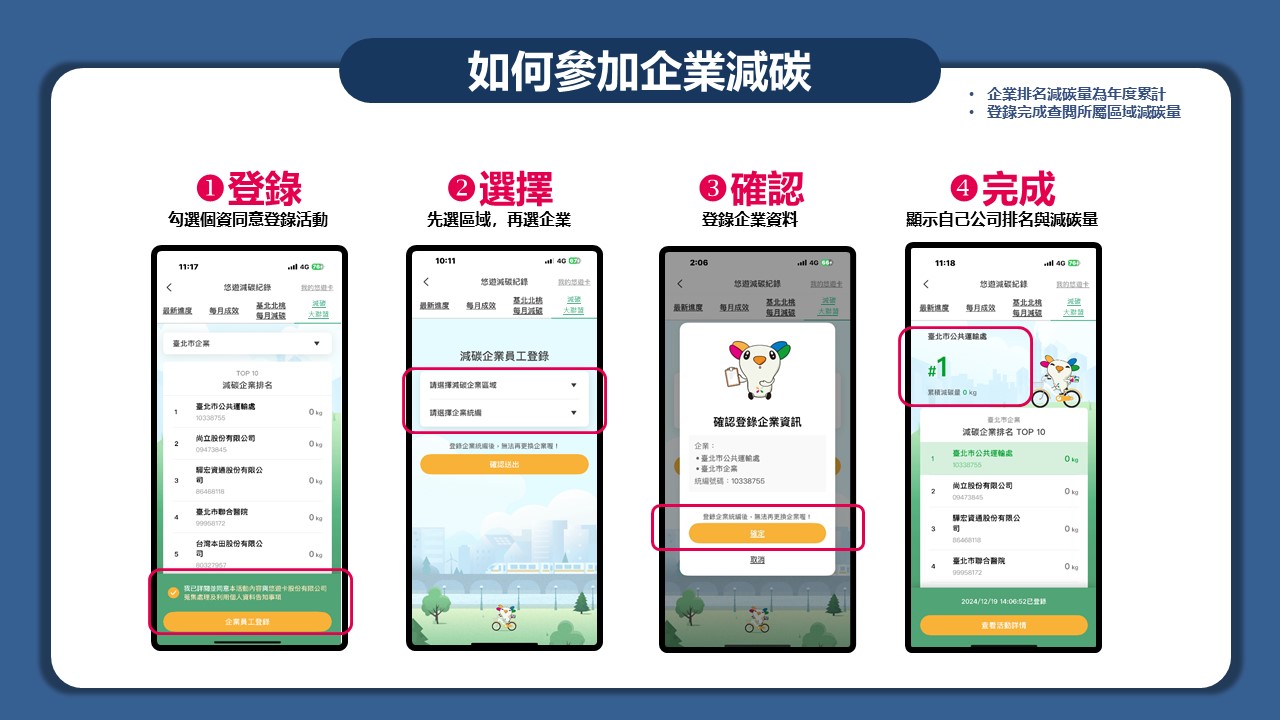 二、本年度新增「減碳大聯盟」活動,只要於當年度累積減碳 量前5名可獲得公開表揚,請貴校鼓勵教職員工參加,並於連結填妥相關資訊後(https: //www.surveycake.com/s /Q23qL),向校內教職員宣導依附件1-2中步驟進行個人加 入及單位員工綁定,誠摯邀請貴校加入響應。