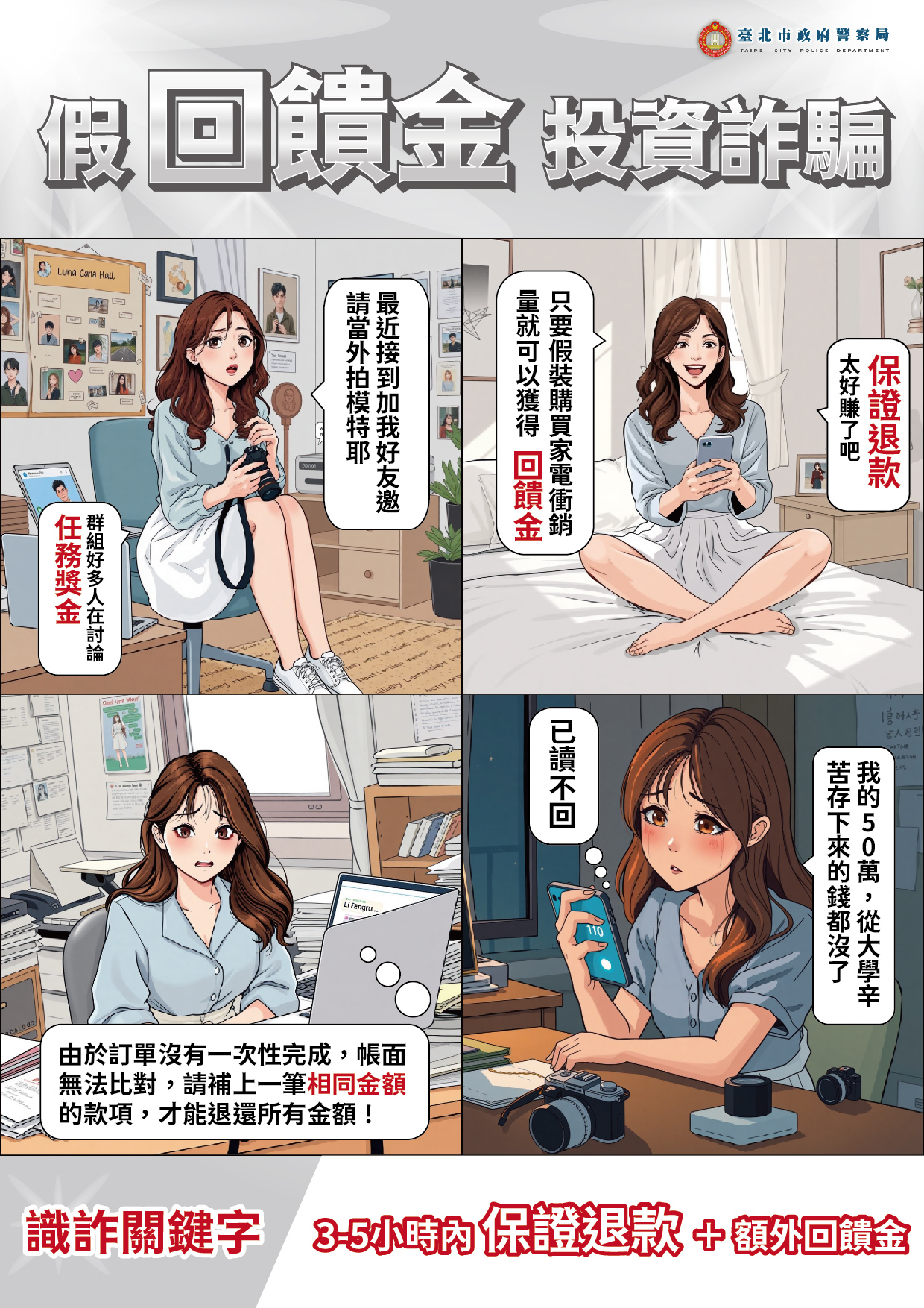 114年1月各類詐欺案件發生數共計1,400件,財損 新臺幣(以下同)11億7,547萬元,前3大詐欺手法之受理 件數及財損金額(一)假投資詐騙297件,財損7億4,760萬元。 (二)網路購物詐騙242件,財損1,143萬元。 (三)假買家騙賣家詐騙153件,財損1,595萬元。 三、因應前3大高發詐欺手法,多用「通知中獎」或「贈送回饋 金」等方式誘導民眾加入群組等手法。