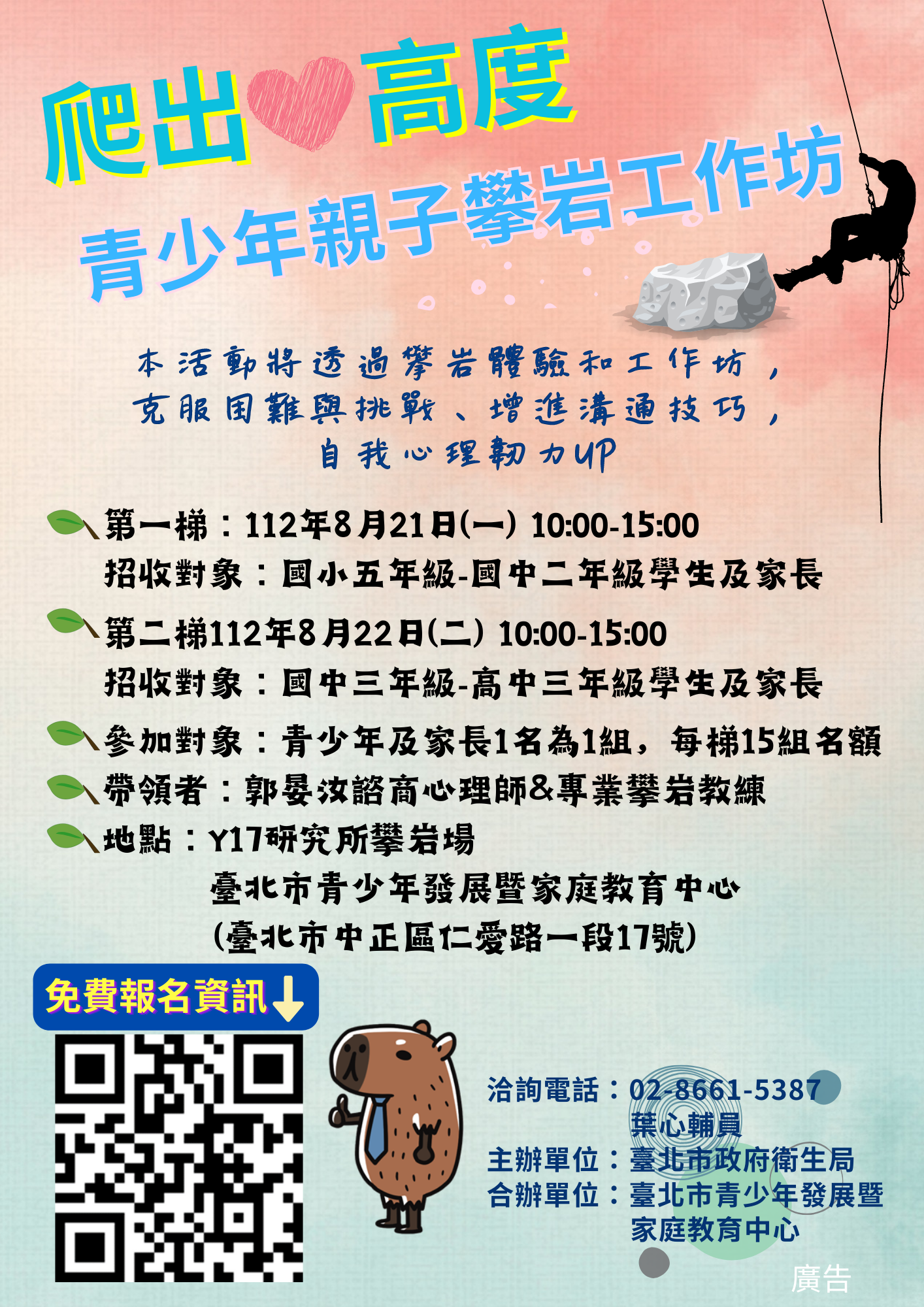 (三)苗栗場:112年7月23日(星期日)下午2時30分,苗栗縣文化觀光局中正堂(苗栗市自治路50號)。